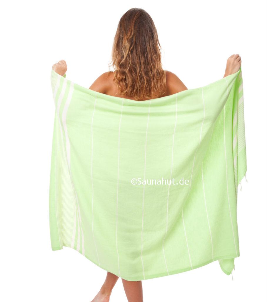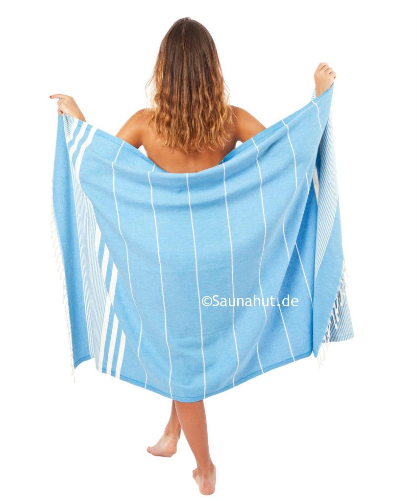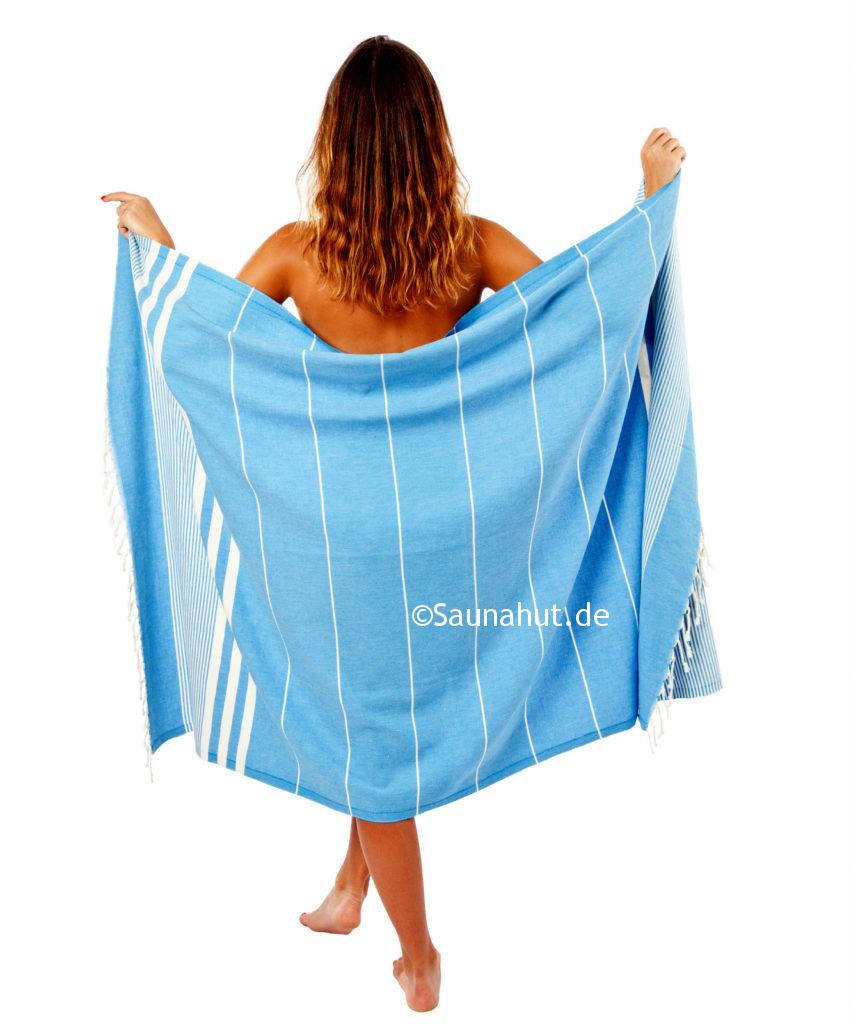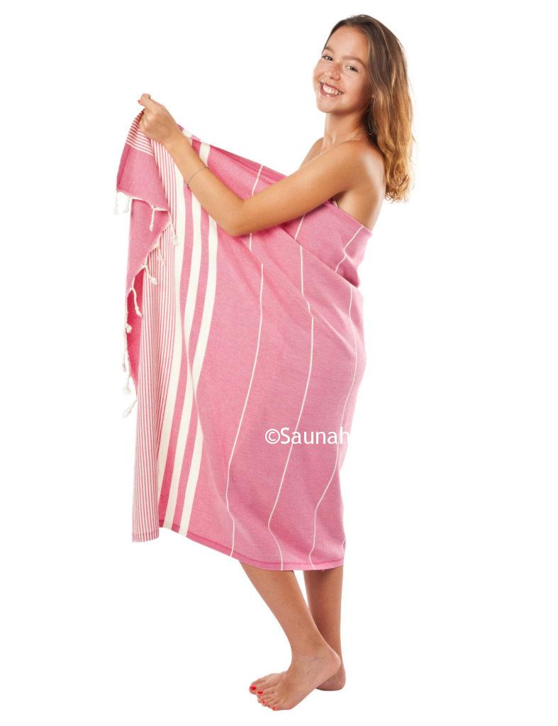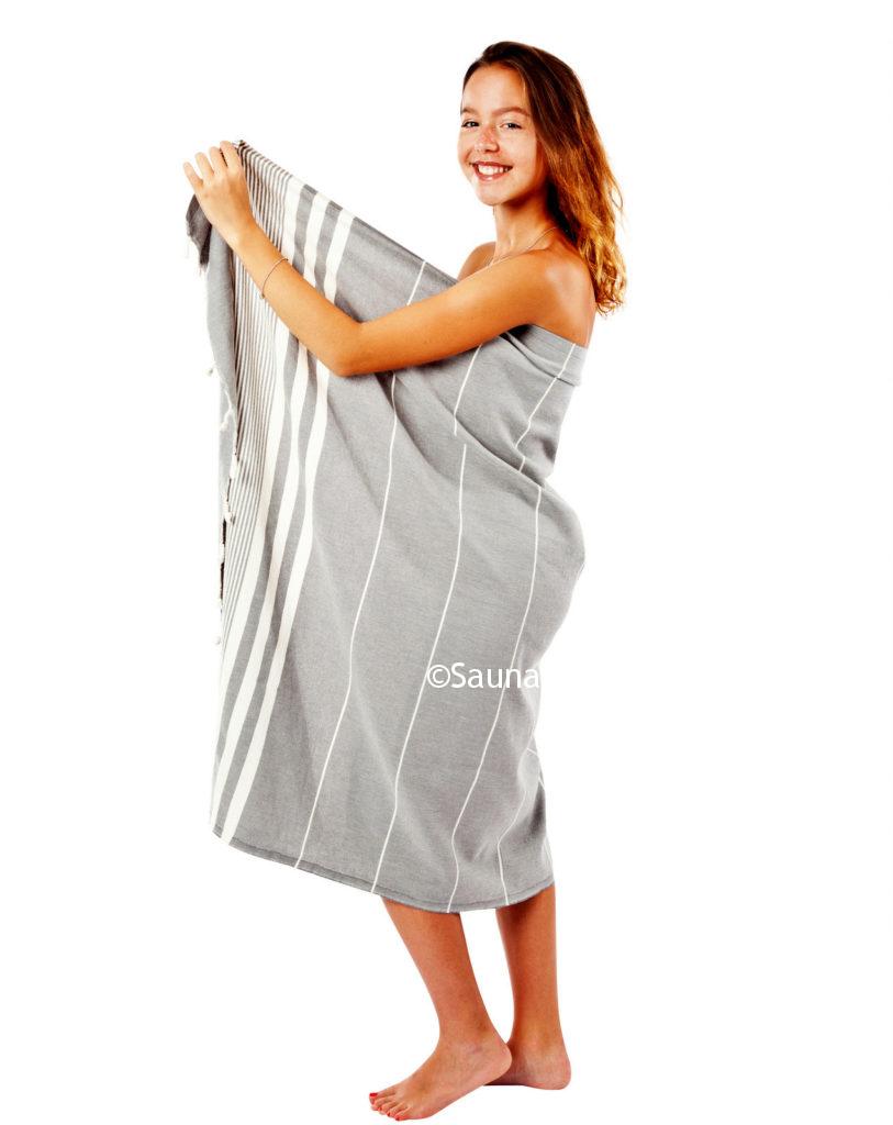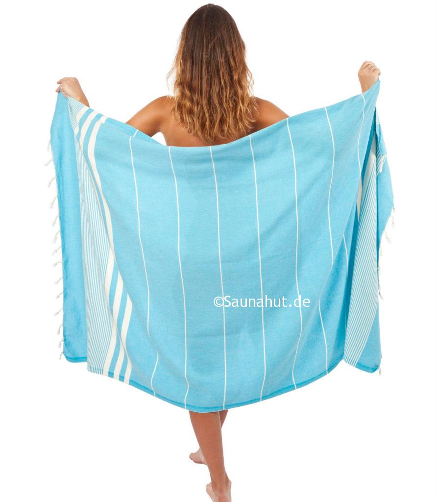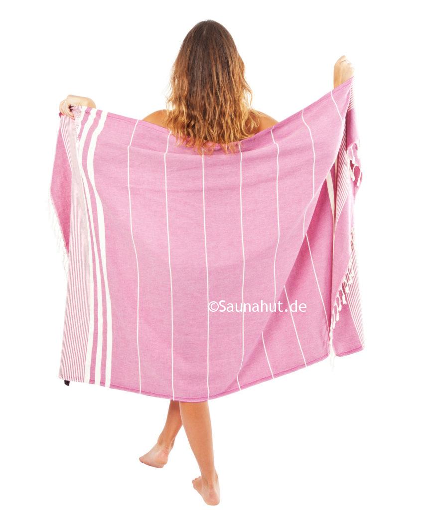 Verwendung findet dieses Pestemal ursprünglich im Hamam, jedoch wird es gerne für die Sauna als Liegetuch bzw. Wickeltuch.